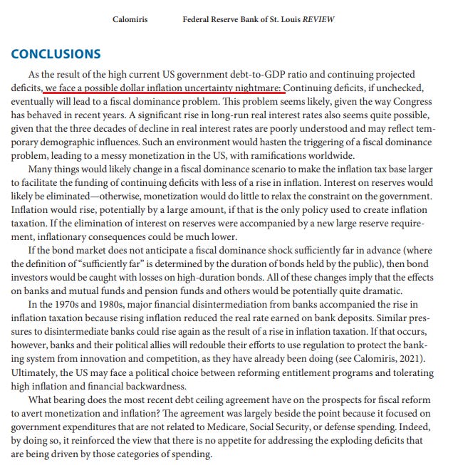 Take a second to read the underline, this is from the federal reserve bank of St. Louis. Even the government realizes we are going to be facing an inflation nightmare, unless the government starts cutting entitlement programs, which is never going to happen. The path of least resistance is to print more money and the government will do just that, so protect yourself with anti-dollar investments.