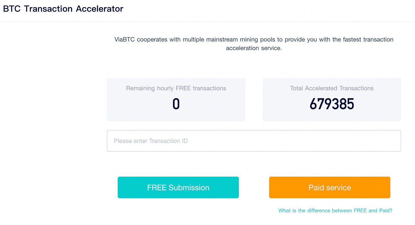 Once you are on the ViaBTC site, you will need to create an account and enter your transaction ID into the box. You are allowed several free submissions. ViaBTC ensures that your transaction gets added to the next block of transactions being mined by Bitcoin miners. My original transaction had almost no fees attached to it, and this accelerator worked perfectly; the transactions were confirmed an hour later. So, if you have a Bitcoin transaction stuck in the mempool or just want to speed up a transaction, this is the perfect tool.