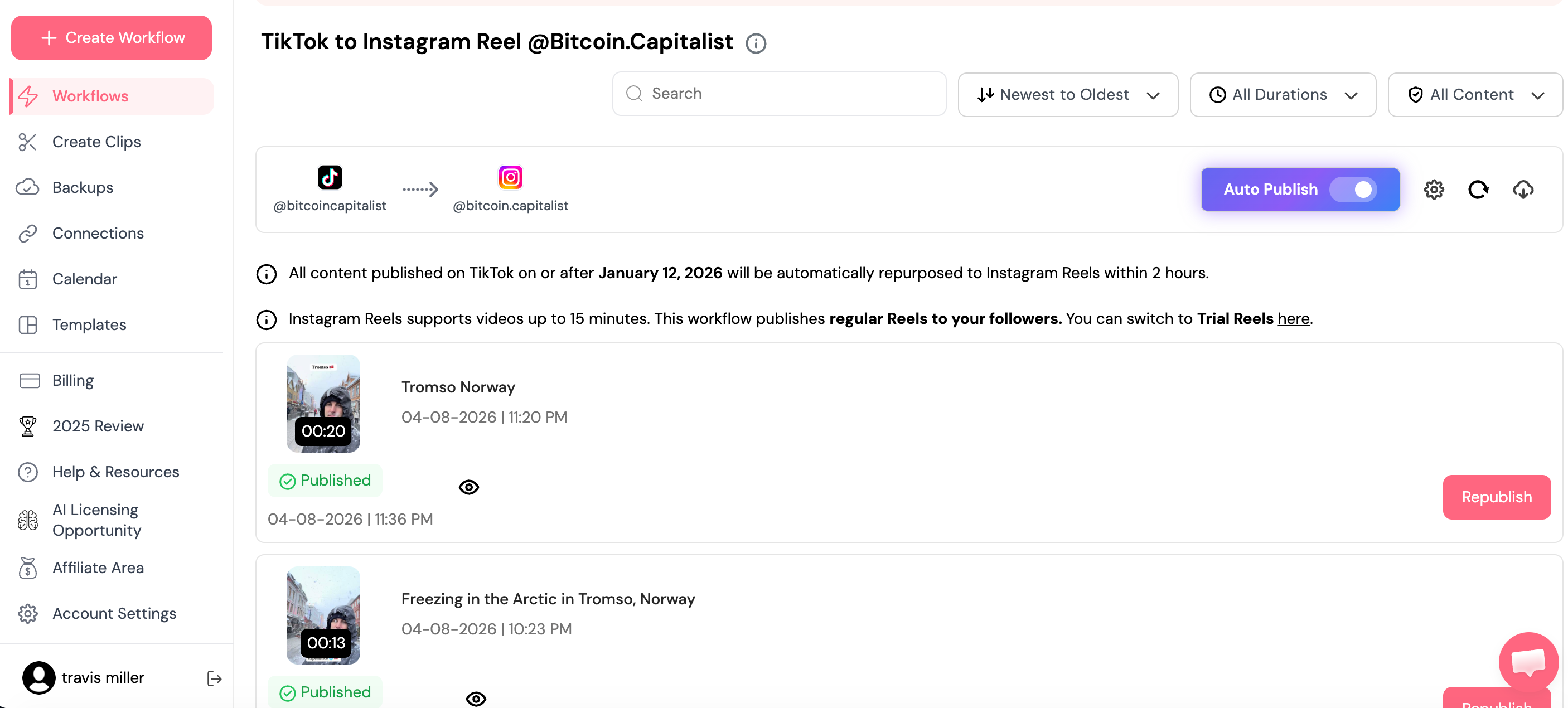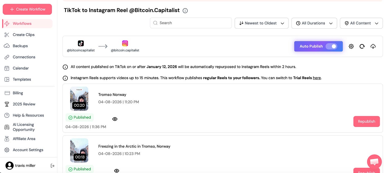 At the time, I was struggling to stay consistent across multiple platforms because it was so time-consuming. I’d usually just take my best-performing TikToks and manually repost them to X and Instagram—which wasn’t sustainable.