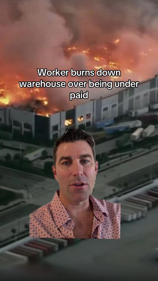 I believe we are at a tipping point, and this warehouse being burned down is a canary in the coal mine. Pretty soon, the majority of working-class people will not be able to afford to live without going into debt, and people will start attacking the system—either by going after employers, protesting, or backing radical candidates that will bring major socialist changes.